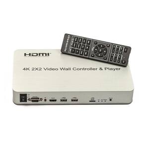Controlador De Vídeo Wall 2x2, Com Usb - Hdmi - 4k Este é um equipamento físico que permite a junção de uma série de monitores, conectados para exibição de imagem ampliada. O produto auxilia na conexão dos expositores, que são empilhados ou enfileirados, para formar uma matriz onde dados de áudio e vídeo são transmitidos.