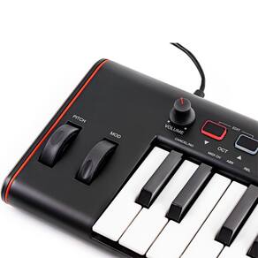 Controlador Ik Multimedia Irig Keys Mini 2 37 Teclas Teclado controlador MIDI ultracompacto iRig Keys 2 dá a você muito mais formas de conectar e controlar todos seus equipamentos, em qualquer situação. Com compatibilidade aprimorada para os mais recentes dispositivos móveis, entrada e saída MIDI completas, múltiplas opções de alimentação, pacote de software incluso e um novo visual elegante, estes novos e aprimorados controladores estão prontos para tocar quando você estiver. Conexões Conector do dispositivo : micro-USB Entrada MIDI : Jack TRS de 2,5 mm Saída MIDI : Jack TRS de 2,5 mm Saída estéreo de fone de ouvido : conector TRS de 1/8 Entrada de pedal externo : Jack TRS de 1/4 apenas iRig Keys 2 e iRig Keys 2 Pro Controles Botão de volume Botões octave up / down Botões de programação para cima / para baixo Botão de configuração 1 codificador push de dados atribuível 4 + 4 botões atribuíveis Pitch bend wheel apenas iRig Keys 2 e iRig Keys 2 Pro Roda de modulação apenas iRig Keys 2 e iRig Keys 2 Pro Comum Conversão : D / A de 16 ou 24 bits Taxa de amostragem : 44,1 kHz, 48 kHz, 88,2 kHz e 96 kHz Alimentação : barramento USB alimentado quando com computador ou dispositivo móvel, fonte de alimentação USB ou baterias USB consulte a nota O pacote inclui Teclado iRig Keys Mini 2 Lightning para cabo de conexão micro-USB 60 cm / 23,6 Cabo de conexão USB-A para micro-USB 60 cm / 23,6 Cabo de conexão USB-C para micro-USB 60 cm / 23,6 apenas iRig Keys 2 Mini 2,5 mm TRS macho para adaptador MIDI fêmea 10 cm / 3,9 iRig Keys 2 Mini Tamanho: 324 mm / 12,76 x 139 mm / 5,5 x 54 mm / 2,13 Peso: 0,58 kg / 20,5 onças Marca: Não Informado