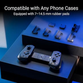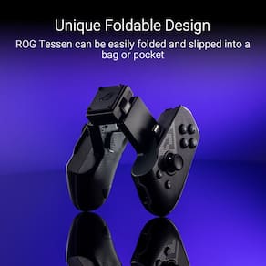 Controlador móvel para jogos ASUS ROG Tessen (dobrável, tamanho único, mapeamento instantâneo de teclas, iluminação RGB, taxa de polling de 500 Hz) - Design portátil: o design dobrável permite a máxima portabilidade, cabendo facilmente em qualquer bolsa - Tamanho único: inclui almofadas de suporte de várias espessuras para acomodar telefones e estojos de todos os tamanhos - Mapeamento instantâneo de teclas: as pás traseiras podem ser programadas rapidamente para vários comandos de função - Controle preciso: joysticks ALPS de 18 mm com ângulos de movimento de 22° para controle preciso - Controles lineares: gatilhos superiores analógicos são ideais para acelerar e frear em jogos de corrida