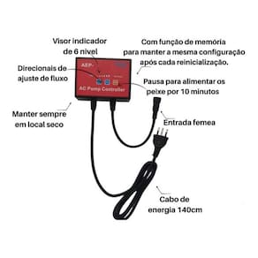 Com as funções Botão FEED interrompe o funcionamento por 10 minutos para alimentação. Volume ajustável pelo controlador com função de memória para manter a mesma configuração após cada reinicialização.