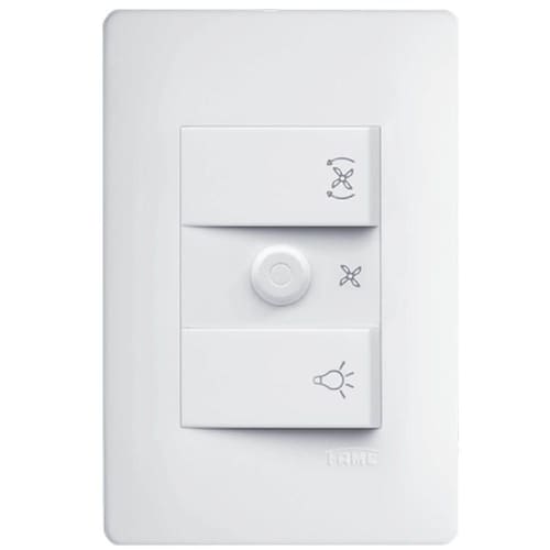 Controlador Para Ventilador Bivolt Habitat - 4089 - Fame Controlador para Ventilador Bivolt Habitat - 4089 - FAME Descrição: - Série Habitat - Tudo o que se espera em material elétrico. - A Série Habitat FAME possui acabamento branco acetinado das placas e módulos com tratamento especial que permite maior resistência aos raios ultravioletas, garantindo uniformidade das cores dos conjuntos montados. - Design e Tecnologia. - Agilidade na instalação. - Borne prensa cabo (tipo gaiola) com parafusos imperdíveis: Conexão mais segura que preserva a integridade dos condutores.