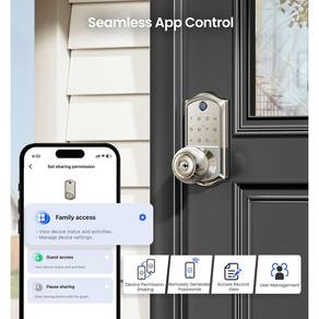 - Gerencie o acesso sem esforço: desbloqueio 7 em 1 - aplicativo, impressão digital, autorização do usuário, compartilhamento de código, códigos PIN, cartão IC e chave. Tempo de resposta menor que 0,5S, pode armazenar 100 pinos e cartões IC. Até mesmo várias famílias e proprietários gerenciam sua trava inteligente de forma eficiente