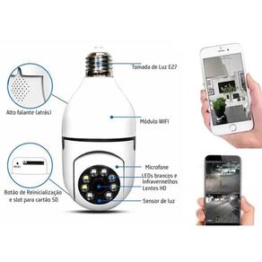 Controle Inteligente: Câmera de Segurança Wifi IP Sem Fio 360 Encaixe Lâmpada Instale apenas 1 câmera para monitorar toda a frente de sua casa e tenha Acesso remoto pelo celular de qualquer lugar do mundo com a câmera de Seguranca IPC 360. Agora você pode ter em sua casa, escritório, casa na praia, comércio onde você quiser, uma câmera super discreta. Características: -acesso no Celular Pelo App da câmera -navegação Panoramica -segue Movimento -formato do Vídeo- HD 1MP / 1.3MP / 2MP -recepção de Sinal Wifi -microfone de Entrada Embutido -pode Armazenar na Nuvem -suporta Cartão de Memória de até 128Gb -visão Noturna através do de controle de contraste da imagem, distancia de visão noturna de até 10 metros -gira Horizontal 355 graus, gira Vertical 100 graus -embutido Alarme e Reprodução -chega Notificação no Celular -bivolt -resistente a Água -peso da Câmera- 450g -cor- Branco -medidas: Altura- 17cm Largura- 11cm Profundidade- 16cm Itens Inclusos na Embalagem: -1 Câmera IP360 -1 Fonte de Alimentação -1 Manual Inglês -1 Kit de Parafusos Marca: Não Informado