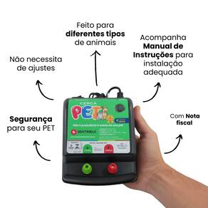? Aplicações Ideal para proteção de hortas, delimitação de áreas externas, cercamento de jardins e controle de acesso em áreas residenciais ou rurais de pequeno porte. Pode ser utilizado com até 4 linhas de fio em cercamentos de até 30 metros por lado (total 120m²).