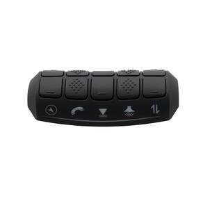 O controle possui 10 teclas, sendo 5 na frente e 5 atrás, conta com ícones para identificação de cada tecla. Sendo elas: troca de música, volume, play/pause, camadas, gps. Porém as teclas podem ser programadas como desejar na multímidia.