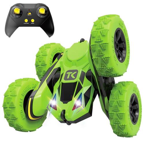 Threeking Rc Stunt Cars Presentes de brinquedo para meninos meninas a partir de 6 anos - Carro de acrobacia RC: além das habilidades básicas que os carros de controle remoto comuns devem ter, o carro pode cair no lugar a 360 graus e dirigir em dupla face. Quando o carro encontrar um pequeno obstáculo, use o controle remoto para fazer o carro rolar ou a condução frente e verso pode passar facilmente por obstáculos, esta função também pode reverter repentinamente em movimento rápido para fazer o carro de brinquedo se transformar instantaneamente em um carro de dança. - Antiinterferência: controles fáceis; longa distância e anti-interferência. Vários conjuntos de carrinhos de brinquedo podem competir juntos, e esses carros seguirão seu próprio caminho sem interferir um no outro. As crianças vão desfrutar de suas corridas e desafios únicos com seus amigos. - Vamos brincar juntos: o carro equipado com 2 motores elétricos potentes e 4 peças de pneus de borracha macia e elástica de alta qualidade (absorção de choque, antiderrapante, boa aderência). Quer estejamos em ambientes internos ou externos, para escolher o lugar certo, vamos lá, o carro de acrobacias trará uma experiência de condução diferente para seus filhos. - PARA SEGURANÇA: Plástico de alta qualidade e impressão adequada, para garantir que o material seja seguro, o carro é fixado com dezenas de parafusos e elementos eletrônicos de alta classe para garantir a segurança da estrutura do carro. Isso será mais adequado para seus filhos. - Para crianças: para melhorar a capacidade prática da criança e tornar a bateria mais segura durante o carregamento, abra a tampa da bateria na parte traseira do corpo do carro para remover a bateria e conecte-a ao carregador USB para carregar. A bateria recarregável de íons de lítio do carro tem potência de alta taxa, capacidade suficiente. ***A bateria do controle remoto não está incluída!! Bons presentes para crianças a partir de 6 anos.