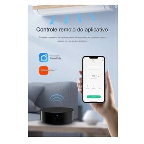 - Destaques do Produto: - Controle Remoto por App: Com o Smart Life ou Tuya Smart App, você pode controlar seus aparelhos remotamente via smartphone ou tablet. - Controle por Voz Sem Esforço: Conecte com Alexa, Google Home e controle seus dispositivos IR (exceto dispositivos DIY) usando comandos de voz. - Compatibilidade Ampla: Biblioteca de códigos IR com suporte para mais de 5.000 dispositivos, incluindo TV, ar-condicionado, ventilador e muito mais. - Sinal Forte em 360°: Cobertura total de 360° com 7 emissores infravermelhos. Funciona a até 10 metros em ambientes sem barreiras. - Compartilhamento Familiar: Permita que outros membros da família controlem os dispositivos conectados com permissões limitadas. - Função de Automação: Combine seu controle remoto IR com outros dispositivos inteligentes, sensores e crie uma casa automatizada.