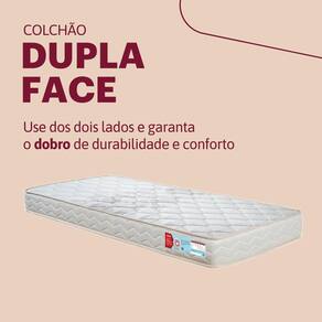 Nível de conforto: Firmeza ideal. Estrutura: Espuma certificada D20 - suporta até 50kg por pessoa. Tecido: Poliéster, resistente e durável. Certificação: Selo Pró-Espuma - o único selo que garante a qualidade superior do colchão. Proibida a utilização de EPS(isopor) na fabricação do colchão.