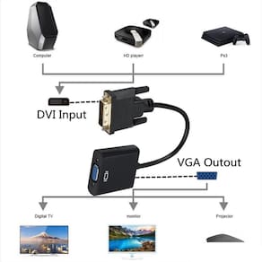 - comprimento: 23cm - peso: 60g - conector: dvi-d para vga - cor: preto - compatibilidade: para projetor/monitor/hd dvd/hd tv