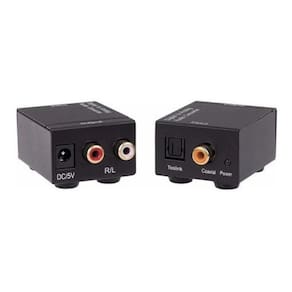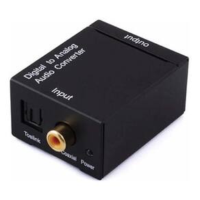 Conversor Áudio Digital Cabo Óptico Coaxial Para Rca Analógico O conversor de áudio digital óptico e coaxial para áudio analógico rca, permite que transmita o som das TVs mais modernas que possuem apenas saída de áudio digital para aparelhos de som e home theater que possuem apenas entrada de áudio analógica rca. Ele converte sinais de áudio digital coaxial ou Toslink para áudio L / R analógico.