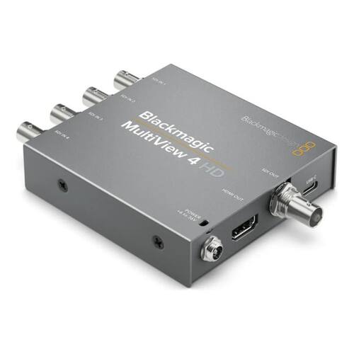 O Blackmagic Design MultiView 4 HD é um miniconversor compacto que permite exibir até quatro fluxos SDI separados por meio de suas saídas HDMI de 10 bits ou SDI multi-view. Esta unidade é compatível com os formatos SD / HD / 3G-SDI e possui detecção automática de sinal, deslocamento de relógio SDI e suporte para monitor EDID. Além disso, cada visualização pode exibir sobreposições personalizadas, como rótulos e medidores de áudio, e a interface USB 2.0 integrada pode ser usada para atualizações. A caixa de metal MultiView 4 HD mede aproximadamente 5.3 x 3.6" e inclui uma fonte de alimentação com adaptadores internacionais. Marca: Não Informado