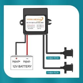 - Tensão de entrada: DC 12V 24V, tensão de saída: DC 5V, saída total: 6A/30W (máx.)