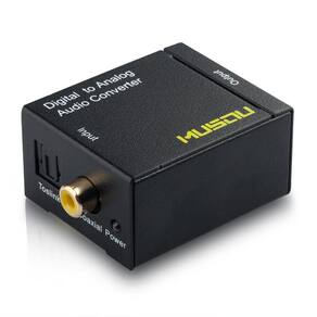 Converte sinais de áudio digital coaxial ou Toslink em áudio L/R analógico