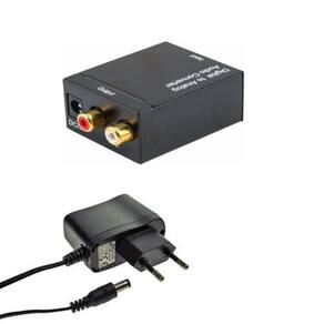CONVERSOR ÓPTICO DE ÁUDIO PARA RCA AnalógicoConverter O áudio digital para analógico foi projetado para comutação de áudio doméstica ou profissional. Converte sinais de áudio digital coaxial ou Toslink em áudio L/R analógico. Suporta taxa de amostragem de 32, 44,1, 48 e 96 kHz. Fluxo de bits de entrada S/PDIF de 24 bits nos canais esquerdo e direito\ NFornece transmissão eletromagnética sem ruído\ NFácil de instalar e simples de operar. ESPECIFICAÇÕES: Entrada de áudio: áudio digital coaxial ou ToslinkSaída de áudio: conector de áudio L/R Entrada de áudio: TOSLINK. 1 conector de saída de áudio RCA (coaxial): 2 x RCA (R/L) Frequência de amostragem: 32, 44,1, 48 e 96 kHz Temperatura de trabalho: 0 ~ 70° Bomba de trabalho: 10% ~ 85% RH (sem condensação) Fonte de alimentação externa: 5 V DC/1ª alimentação consumo: 0,5 Dimensão: 50x40x26mmCor: pretoCódigo: 305007