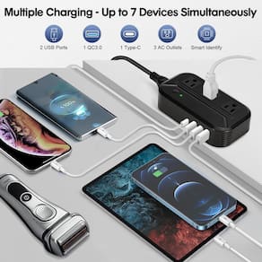 NÃO PODE funcionar com dispositivos controlados eletronicamente operados por chip inteligente, ligar/desligar automaticamente, tela sensível ao toque, temporizador ou função de pulso. Por que você precisa de um conversor de energia? Contanto que você viaje para fora dos EUA, precisará de um conversor de energia para carregar ou usar seus eletrônicos. Um conversor redutor de tensão ajuda você a usar seus componentes eletrônicos de 110V dos EUA em outros países de 220V-240V. O conversor de voltagem e o adaptador de viagem salvarão sua vida quando você estiver em outros países, a menos que não consiga usar nenhum aparelho eletrônico. Por que nosso conversor vale a pena comprar? Nosso conversor redutor de tensão definitivamente garantirá o uso de dispositivos de tensão não dupla enquanto você estiver viajando para o exterior. Nosso conjunto mundial de adaptadores de viagem com conversor de energia 2 em 1 vem com 7 tipos de adaptador UE/Reino Unido/IT/AU/US/Índia/África do Sul, eles cobrem quase todo o tipo de plugue do mundo. Nosso transformador de potência de viagem projetado com sistema de proteção e também o ventilador de resfriamento para uso seguro. Como conversor, adaptador de viagem, ele suporta tomadas USB e AC para uso eletrônico, satisfazendo todas as suas necessidades de carregamento durante a viagem. O que você deve conhecer? !!! A potência total dos dispositivos deve estar abaixo de 2300W (26W acima)!!! !!! Somente para dispositivos de 90-120v, NÃO diretamente para dispositivos de 220-240v!!! !!! Use somente para dispositivos com controle mecânico!!! !!! NÃO para dispositivos controlados eletronicamente operados por chip inteligente, liga/desativação automática, tela sensível ao toque, temporizador ou função de pulso!!! Especificações Entrada: 220-240 V Saída: 90-120 V 1 x porta QC 3.0 1 x porta tipo C 2 x portas USB 3 x tomadas AC O que você receberá? 1 x conversor de voltagem 1 x plugue de cabo da UE 1 x adaptador da África do Sul 1 x adaptador da Índia 1 x adaptador do Reino Unido 1 x adaptador do Reino Unido 1 x adaptador dos EUA 1 x manual do usuário - Conversor de energia com 7 adaptadores de viagem - Este conversor de tensão mundial ajuda a reduzir a tensão de 240 V/220 V para 120 V/110 V, vem com plugue de cabo da UE e adaptadores de viagem AU/IT/UK/EUA/Índia/África do Sul, que cobrem mais de 200 países, faz com que você carregue ou use sua eletrônica não dupla padrão CA de 110 V ao viajar para qualquer país de 220 V em todo o mundo. Você não precisa mais se preocupar com o carregamento ou comprar um transformador caro em uma loja local enquanto viaja - Alta potência atualizada para MAIS aparelhos - Com alta potência total de 2300 W, este conversor será compatível com mais eletrônicos, não apenas funcionando em celular, laptop, tablet, alto-falante Bluetooth, mas também para secador de cabelo, purificador de ar, panela de arroz, chaleira elétrica, etc., funcionará desde que seus dispositivos sejam controlados mecanicamente e entre 26W e 2300W?Se você não tiver certeza sobre a compatibilidade de seus dispositivos, para confirmar antes a compra? - Conversores e adaptadores de voltagem internacionais para viagens - O tamanho compacto portátil e o design tudo-em-um tornam este transformador de potência um companheiro excelente e indispensável para viagens ao exterior. Com 3 tomadas AC e 4 portas USB, que também incluem carregamento Type-C e QC, você pode usá-lo para carregar vários dispositivos simultaneamente, mesmo para uma viagem em família! Ao contrário dos conversores tradicionais, que tendem a ser grandes e pesados, nosso conversor de design especial é definitivamente prático para viagens - Conversor de adaptador de energia universal indispensável - Você vai para o exterior, com certeza precisa de um transformador de potência, a menos que todos os seus dispositivos sejam de dupla voltagem. Isso ajuda a resolver o problema de uso de eletrônicos, não importa para qual país você esteja indo, e com nosso limite de 12 meses, definitivamente vale a pena tentar! Qualquer preocupação ou confusão, faça uma pergunta ou . Teremos o maior prazer em ajudá-lo a qualquer momento - Conversor de viagem sustentável e de segurança - Projetado com superaquecimento, sobrecorrente, sobretensão, proteção contra curto-circuito e proteção contra sobretensão, além de ventiladores duplos silenciosos em ambos os lados para reduzir o calor, nosso conversor funcionará em condições estáveis e fornecerá segurança ao usar seus dispositivos, sem se preocupar em queimar um fusível ou desligar a energia do hotel, que também é segurança para você?Nosso conversor é certificado por ETL, CE, FCC e CSA C Teste de segurança 22.2 do Laboratório ISO/ILAC 17025.? - IMPORTANTE VERIFICAR ANTES DA COMPRA - Conforme anunciamos na descrição e nas fotos, este conversor de voltagem NÃO funcionará para dispositivos controlados eletronicamente que operam por chip inteligente, liga/desliga automática, tela sensível ao toque, temporizador ou função de pulso, etc. Certifique-se de que seus dispositivos sejam controlados mecanicamente, com um botão liga/desliga de um lado para o outro. Se você não puder confirmar, por e-mail ou “você pode responder”, gostaríamos de ajudar - É NECESSÁRIO SABER antes de usar seu aparelho - Nunca tente usar dispositivos que não funcionem conforme anunciamos, como escova de dentes com menos de 26 W, alisador/modelador de cabelo ou secador de cabelo com controle eletrônico e mais dispositivos. Todos os tipos de conversor de viagem funcionarão apenas para aparelhos com controle mecânico. Se você não tiver certeza se seus dispositivos funcionarão ou não, por e-mail. Não queremos causar nenhum inconveniente. - Sempre ligue o conversor primeiro, não conecte nenhum dispositivo ao conversor antes que ele receba luz verde (pressione o botão de 3 a 5 segundos).