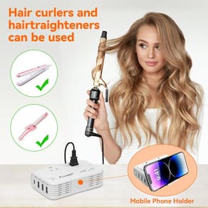 Conversor de energia portátil Esta versão atualizada funciona perfeitamente para alisador de cabelo e modelador de cabelo, o adaptador de viagem internacional com dois plugues padrão dos EUA e inclui 4 portas USB carregando uma tipo C PD18W, pode ser utilizado com aparelhos com menos de 230 watts, como barbeador elétrico/cortador de cabelo, escova de dentes elétrica, ventilador, nebulizador, console de jogos, Kindle, laptop, telefones celulares, etc. Potência máxima: 230 W Ao carregar simultaneamente vários dispositivos, certifique-se de que a potência total seja inferior a 230 W em caso de superaquecimento ou danos. Não use este conversor com aparelhos classificados em tensão 220V-240V AC. Este produto só é capaz de fornecer energia para produtos de 100 V-120 VAC. Sistema de segurança MultiProtect ALLWEI conversor de energia com proteção integrada, proteção contra surtos, proteção contra curto-circuito e recursos de segurança mais avançados mantêm você e seus dispositivos seguros. Tamanho pequeno portátil (4,9 x 2,8 x 1,5 cm) como passaporte para você levar facilmente o kit com você em qualquer lugar. Cinco tipos de adaptadores: Tipo E/F (plugue UE): França / Alemanha / Bélgica / Polônia / Rússia / Eslováquia / República Tcheca / Andorra / Armênia / Áustria / Bielorrússia / Bulgária / Croácia / Estônia Tipo D (Adaptador IN): Índia, Dominica, Gana, Iraque, Líbano, Paquistão, Tanzânia, Tipo do Zimbábue L (adaptador IT): utilizado principalmente no Chile /Etiópia/Itália/Líbia/Síria/Tunísia/Uruguai tipo I (adaptador AU): utilizado principalmente na Austrália, Nova Zelândia, China e Argentina Tipo G (adaptador do Reino Unido): utilizado principalmente no Bahrein, Belize, Botswana, Brunei, Chipre, Dominica, Inglaterra, Ghano ana /Gibralal Tar /Granada/Hong Kong/Iraque/Irlanda/Quênia/Macau/Malta/Malásia/Nigéria/Irlanda do Norte/Omã/Catar/Santa Lúcia/São Vicente/Arábia Saudita/Escócia/Cingapura/Sri Lanka/Tanzânia/Uganda/Emirados Árabes Unidos/País de Gales/Iêmen/Iêmen/Zimbábue - ? Esta atualização é perfeita para alisadores de cabelo e chapinhas? A tecnologia patenteada permite que você use chapinhas e alisadores de cabelo de até 230 W em países de 220 V. O adaptador de viagem internacional funciona com aparelhos de até 230W como barbeador/barbeiro elétrico, escova de dentes elétrica, ventilador, pulverizador, console de jogos, Kindle, laptop, celular, etc. - ?Uso mundial?Converte tensão de diferentes países (90V-260V, 50/60Hz) para tensão EUA/Japão (110V, 60Hz) adequada para carregar vários dispositivos. Tamanho compacto (4,9 x 2,9 x 1,5 cm), pode ser facilmente colocado em qualquer lugar na sua bagagem. 1 cabo de alimentação da UE e 3 adaptadores internacionais (plugues EUA/Reino Unido/AU) suportam soquetes na Austrália, América do Norte, Reino Unido, Europa Continental, Japão, China e mais de 150 países em todo o mundo. - ?Pode carregar 6 dispositivos simultaneamente?Conversor de tensão equipado com 2 EUA. portas de entrada, 3 portas USB, uma porta PD TYPC de 18 W com função de carregamento rápido, a porta pode carregar vários dispositivos para serem carregados ao mesmo tempo em alta velocidade. A tecnologia gera corrente de 6,4 A (máx.) e se ajusta automaticamente à corrente máxima de carregamento do dispositivo conectado. - ?Seguro e silencioso?O ventilador funciona silenciosamente e o conversor de tensão de viagem desliga automaticamente em caso de sobretensão, superaquecimento, sobrecorrente, sobretemperatura ou curto-circuito para garantir sua segurança. O ventilador funciona silenciosamente para que você possa dormir em paz. - ?O que você recebe? Adaptador de energia internacional ALLWEI incluindo cabo de alimentação da UE removível de 1,5 m x 1,5 m e 1 adaptador do Reino Unido, 1 x adaptador de dupla finalidade EUA/AU. Bolsa de armazenamento, manual do usuário (sem garantia de versão em português).