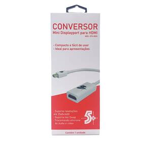 Conversão de sinal de Mini DisplayPort para HDMI com qualidade. Possui suporte a áudio e vídeo em alta definição.Tem ompatibilidade com computadores, tablets e outros dispositivos, para facilitar sua vida. Tem também a possibilidade de assistir filmes ou realizar apresentações em TVs, monitores ou projetores.