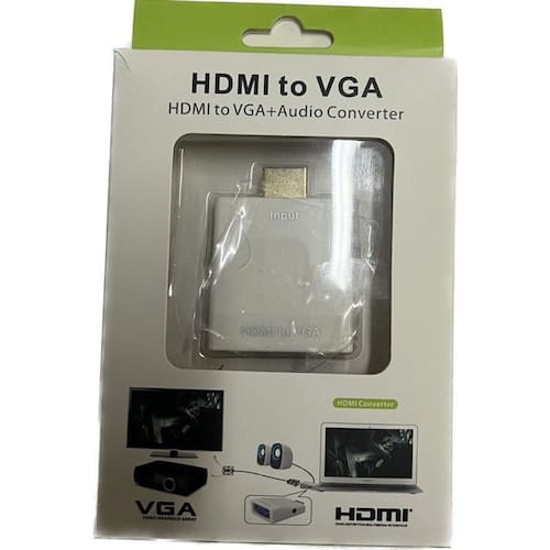 Conversor HDMI para VGA com saída de áudio. Ideal para conectar dispositivos com saída HDMI a monitores e TVs com entrada VGA.