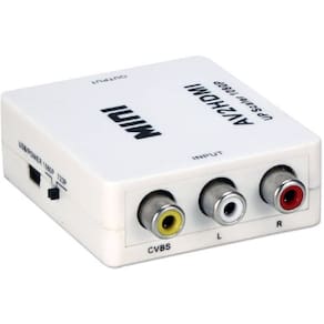 Converte áudio/vídeo composto em sinal HDMI de alto nível para 720p ou 1080p alimentado por porta HDMI ou USB, switch NTSC/PAL para uso internacional