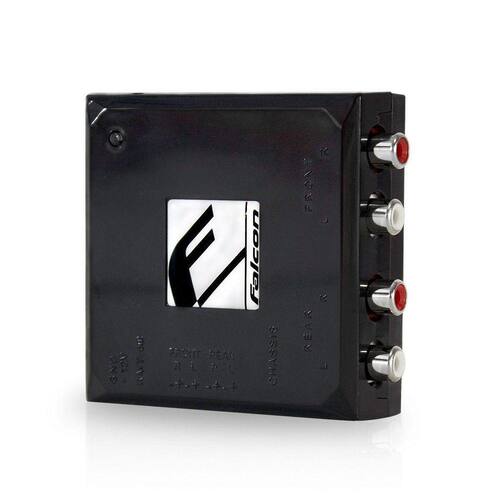 Conversor Rca Falcon Fc 4X 4 Canais Fio Para Rca Características: - Conversor de saídas Amplificadas para RCA - 4 canais de entradas | 4 canais de saídas - Para ser utilizado com CD Players, que não possuem conexão RCA - Possui um exclusivo sistema de Acionamento Automático para Amplificador - Após detectar o sinal na entrada de áudio, o FC 4 X gera comando remoto