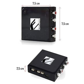 Especificações Técnicas: - Entradas: Nível alto Sinal Amplificada - Saídas: Nível baixo RCA - LED: Indicador de funcionamento - Filtro Anti-Ruído: SIM - Alimentação: Nominal - 13,8 VDC / Mínima - 10,5 VDC / Máxima - 15,6 VDC - Corrente Máxima de saída RMT: 500 mA - Altura: 2,5 cm - Largura: 7,5 cm - Comprimento: 7,5 cm - Garantia: 1 Ano
