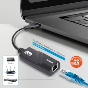 Conversor Usb 3.0 Para Rj-45 Gigabit Ethernet Comtac 9392 O conversor usb 3.0 para rj-45 ethernet gigabit transforma uma porta usb em uma conexão de rede rj-45. Com ele cria-se uma nova conexão de rede via cabo em notebooks, netbooks e nos mais novos ultrabooks que não possuem conexão rj-45 ou simplesmente substitui uma porta rj-45 de rede que sofreu danos em desktops e notebooks sem a necessidade de trocar a placa de rede. Características: conecta seu computador, notebook a um roteador, modem ou switch de rede para conexão de rede cabeada. equipado com uma porta usb 3.0 e uma porta gigabit ethernet. Substituir uma porta ethernet que sofreu danos. oferece uma taxa de transferência de dados de alta velocidade de até 1000 mbps. Mais rápido e mais confiável do que a maioria das conexões sem fio. cria uma coneção de rede via cabo nos novos notebooks, ultrabooks, chromebook e books air que não possuem conexão rj-45. tamanho compacto que proporciona fácil portabilidade. plug e play. Especificações técnicas: interface de saída: porta rj-45 ethernet gigabit interface de entrada: porta usb 3.0 super speed usb tipo a macho taxa de transmissão: 10/100/1000mbps padrões de rede: iee 802.3, 802.3u e 802.3ab compatibilidade: compatível com versões anteriores da usb 2.0 / 1.1 chipset: realtek rtl8154 sistemas suportados: windows 10/8.1/8/7, os 10.6-10.14, chrome os, linus os. Conteúdo da embalagem: 1 conversor usb 3.0 para rj-45 1 cd de instalação 1 manual de instalação Marca: Não Informado