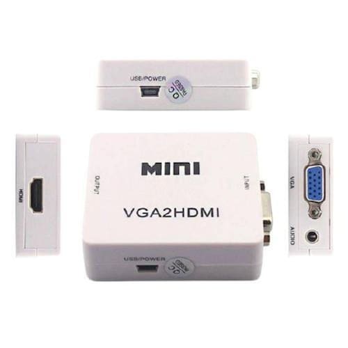 Conversor VGA para HDMI DESCRIÇÃO Adaptador e Conversor VGA para HDMI, suporta resolução até 1080p de entrada. Uma solução perfeita para conectar seus aparelhos analógicos com saídas VGA e converte para saida HDMI na sua nova TV, e ainda por cima possui entrada P2 para que você também possa transferir o áudio Compre agora seu adaptador e não se preocupe mais toda vez que precisar ligar algo no HDMI da sua TV. ESPECIFICAÇÕESInterface de Entrada: VGA/P2Interface de Saída: HDMI FêmeaResolução: 1080pCor: Branca/PretoModelo: VGA/HDMITamanho: (LxAxC) 10cm X 10cm X 5cmCompatível: HDMI 1.0/1.1/1.2/1.3/1.4Origem: ChinaRequisitos: Cabos para Conexão e transferência de Audio e Video tanto para entrada como para a Saída (1 Cabo VGA e 1 Cabo HDMI)