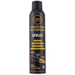 O Convertedor de Ferrugem Spray 300ml - 270G 356734 - TF7, é a solução que você precisa para combater esse problema de maneira rápida, eficaz e econômica. Sua inovadora formulação à base de compostos orgânicos, faz com que a ferrugem se transforme em uma película protetora, preparando a superfície para a pintura e prolongando a vida útil de seus bens. Este revolucionário produto é a solução ideal para quem busca proteger e restaurar superfícies metálicas com praticidade e eficiência. Com sua formulação à base de água, o TF7 garante fácil aplicação e secagem rápida, sem riscos à saúde e ao meio ambiente. Além disso, a ferrugem não afeta somente a aparência de seus bens, mas também compromete sua funcionalidade e segurança. Portanto ignorar a corrosão do mesmo, pode levar a danos irreversíveis e custos elevados de reparos ou . O TF7 age diretamente na ferrugem, neutralizando sua ação e protegendo as superfícies metálicas. Diferenciais: Ação Rápida: Age em minutos, transformando a ferrugem em uma camada protetora. Fácil Aplicação: Sua inovadora formulação, agora em spray, faz com que sua aplicação seja ainda mais pratica e eficiente. Não Inflamável: Seguro para uso em diversos ambientes. Versatilidade: Ideal para uso doméstico, industrial e em equipamentos agrícolas e náuticos. Economia: Alto Rendimento. Funções do TF7: Neutraliza a Ferrugem: Reage com o óxido de ferro, convertendo-o em uma camada protetora de cor preta. Prepara Para Pintura: Cria uma base aderente para aplicação de tintas e vernizes, garantindo um acabamento uniforme e duradouro. Protege Contra Corrosão: Impede o avanço da ferrugem e protege a superfície metálica contra novas oxidações. Economia de Tempo e Dinheiro: Elimina a necessidade de lixamento, jateamento e remoção completa da ferrugem, economizando tempo e mão de obra. Descrição do Produto: Utilidade: Convertedor de Ferrugem. Tipo de Recipiente: Spray. Inflamável: Não. Recomendação de Superfícies: Estruturas Metálicas. Aroma: Sem Cheiro. Referência: 356734. Cód. De Fábrica: 356734. Marca: TF7. Marca: Não Informado
