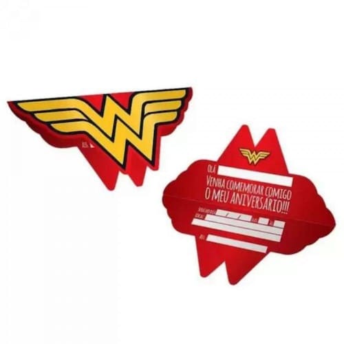 FESTCOLOR MULHER MARAVILHA CONVITE 8 UN - Mulher Maravilha, ou enfermeira Diana, é uma das super-heroínas da DC Comics mais queridas pelos fãs de quadrinhos. E como não estávamos aguentando a ansiedade pelo filme que só estreia no próximo ano,A Decoração de Festa de Aniversário Mulher Maravilha que é ideal para meninas e mulheres empoderadas e que são fãs de HQ!