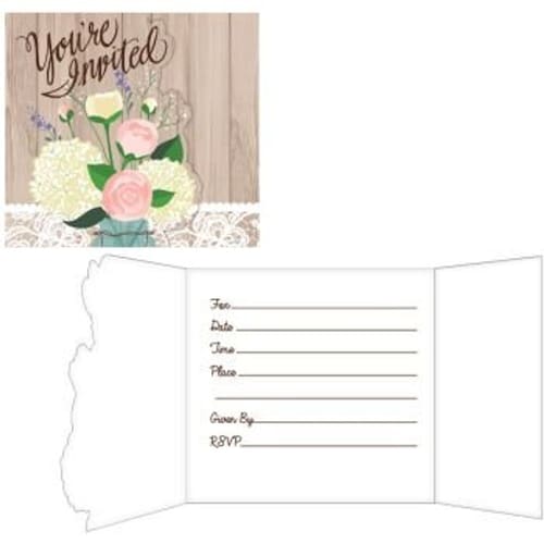 rústico desdobrável convites de casamento. Um pacote de 8 rústico convites de casamento capa dupla com 8 envelopes brancos. Cada convite tem linhas impresso dentro para, data, hora, local, dado por, e RSVP. Convites mede 3 1/2 polegadas x 5 polegadas.