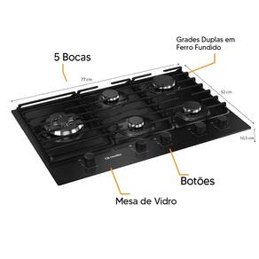 Cooktop Mueller MCG5BM 5 Bocas Tripla Chama com Mesa de Vidro