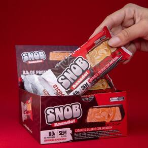Snob é a primeira barrinha de proteína assada ela é sem glúten, zero açúcar e com 9g de proteínas por barra.
