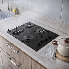 Os botões removíveis e o vidro temperado facilitam a limpeza no dia a dia. Além disso, conta com acendimento Girou, Acendeu, prático e rápido para o uso.