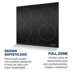 O Cooktop por Indução Mondial CTI-03 reúne inovação, potência e praticidade para transformar sua experiência na cozinha. Com 4 bocas e 7000W de potência, ele oferece aquecimento ultrarrápido e preciso através da tecnologia de indução, proporcionando mais eficiência no preparo das refeições com menor consumo de energia. O design sofisticado com mesa de vidro temperado, painel touch e função Full Zone garante liberdade, segurança e estilo em um único produto.