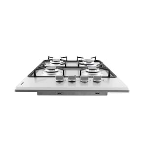 Mesa em inox, 4 queimadores, Trempes em ferro fundido, Acendimento superautomático, Bivolt.Luz de calor residual
