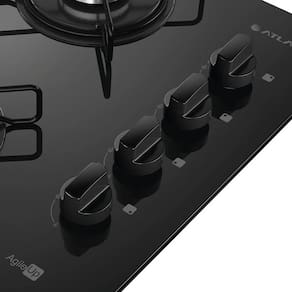 Cooktop Atlas Agile com 4 bocas, mesa de vidro temperado, acendimento superautomático e queimador Mega Chama.