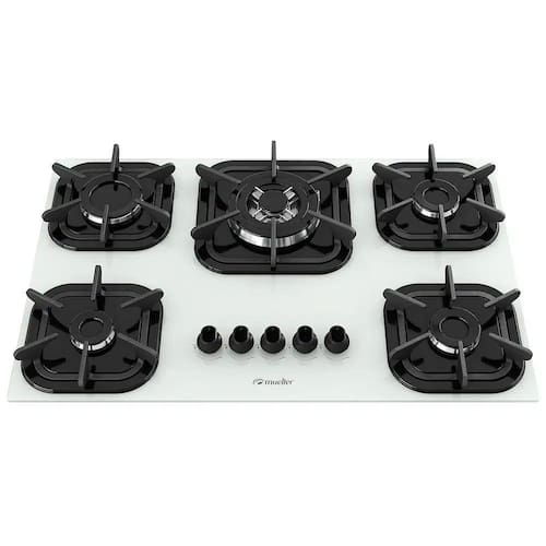 Cooktop 5 Bocas Branco Tripla Chama Bivolt Vidro Temperado Mueller