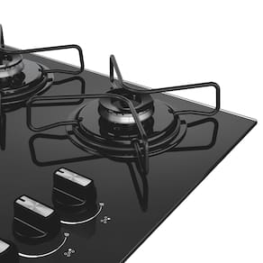 Os queimadores do cooktop distribui o calor de maneira eficiente para qualquer tipo de receita, com acabamento polido.