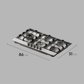Bocas / zonas: 5 bocas Tipo: Cooktop à gás Cores: Cor inox Mesa de vidro: Não Tripla chama: Sim Painel touch: Não Frequência: 50 / 60 Hz Tensão: Bivolt