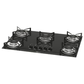 Cooktop Fischer 5 bocas com acendimento superautomático, bivolt e acabamento em preto ébano.Luz de calor residual