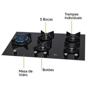 Cooktop a Gás Fischer Infinity Duo 5 Bocas Tripla Chama – Mesa de Vidro Bivolt