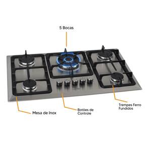 Cooktop a Gás Fischer 5 Bocas Tripla Chama Mesa Inox – Bivolt