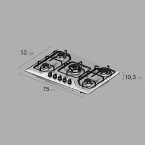 Descubra a arte de cozinhar com o Cooktop 5 bocas a Gas da linha Experience da Electrolux. Com design robusto e sofisticado, este cooktop possui tonalidade prata e e construido em metal resistente, conferindo durabilidade e elegancia para a sua cozinha. Com dimensoes de 75x52 cm (Largura x Profundidade), ele se encaixa perfeitamente em nichos de 69.5 cm de largura e 48 cm de profundidade. O peso do produto e de 10 kg, e mesmo nao sendo portatil, sua instalacao e pratica e descomplicada.