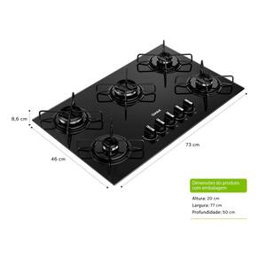 Aprimore a sua experiencia culinaria com o Cooktop 5 bocas a gas da Consul, um aparelho portatil que combina design moderno e funcionalidade. Com dimensoes de 73x46 cm e peso de 10 Kg, este cooktop e compacto, mas nao compromete a eficiencia. Sua estrutura em vidro temperado preto nao so adiciona um toque elegante a sua cozinha, mas tambem garante durabilidade e resistencia a altas temperaturas.