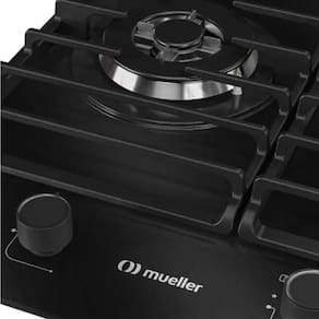 Cooktop Mueller 5 bocas com mesa de vidro temperado, queimador tripla chama e acendimento automático. Bivolt.Alimentação