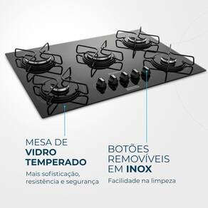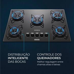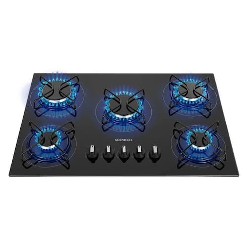 A gásO Cooktop a Gás 5 Bocas CTG-02 une qualidade e potência a um design moderno que vai trazer sofisticação para sua cozinha. Possui mesa com melhor disposição e aproveitamento entre as bocas, 5 queimadores com potência total de e mesa de vidro temperado. Os botões têm acabamento em aço inox e são removíveis, permitindo uma limpeza eficaz e evitando o acúmulo de gordura. Saiba mais sobre o CTG-02 da Mondial: