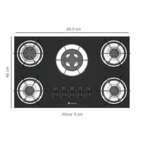Tipo: Cooktop Marca: Venax Acendimento: Super automático Queimadores: 1 Tripla chama, 2 Grandes e 2 Médios Trempe dos queimadores: Esmaltadas Base das trempes: Esmaltadas Mesa dos queimadores: Vidro temperado Botões: Removíveis Entrada de gás: Uma entrada, lado direito visto de frente Medidas do produto: Altura 16cm - Largura 72cm - Profundidade 45cm