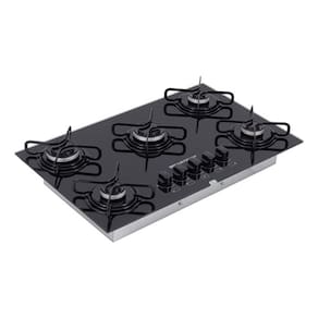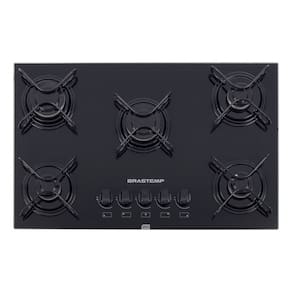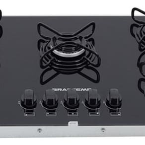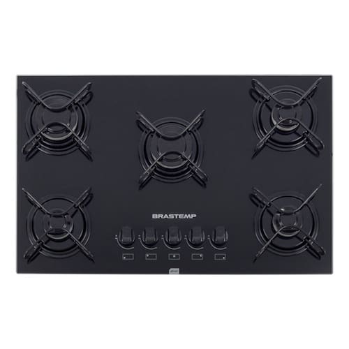 Cooktop a gás Brastemp com 5 bocas, acabamento em vidro preto, acendimento automático e estrutura em aço. Ideal para cozinhas de todos os tamanhos.Alimentação