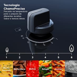 Queimadores Selados Mais segurança: impedem que a chama se apague durante o uso. Acendimento Superautomático: Basta girar o botão para acender. Prático e rápido. Botões Removíveis: Facilidade total na hora da limpeza. Mesa de Aço Inox Escovado: Design sofisticado, ideal para cozinhas modernas. Fácil de limpar e super resistente. Classe A de Eficiência Energética: Economia na conta de luz sem perder desempenho.Luz de calor residual