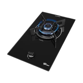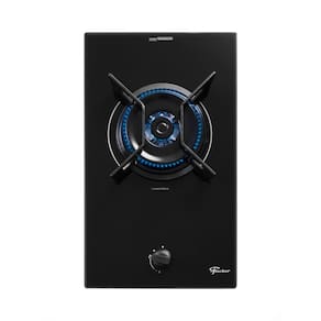 Mesa em vidro temperado preto, queimador Tripla Chama de 3700W, trempe Iron, acendimento superautomático, design compacto.Luz de calor residual
